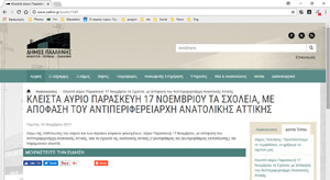 αύριο Παρασκευή 17 Νοεμβρίου, με απόφαση του Αντιπεριφερειάρχη Ανατολικής Αττικής,