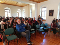 Μετά από διαδρομή 40-45 λεπτών φθάσαμε στο Συνεδριακό Κέντρο στα 'Ανω Πεδινά του Δήμου Ζαγορίων. Μας υποδέχθηκαν ο Δήμαρχος κ. Εξάρχου, ο Πρόεδρος του Πολιτιστικού Συλλόγου Ζαγορίων κ. Ευάγγελος Παπιγκιώτης και ο κ. Παπαϊωάννου Χαρητάκης, Δρ Βιολογίας της Αναπτυξιακής ΗΠΕΙΡΟΣ Α.Ε., ο οποίος μας παρουσίασε το Γεωπάρκο Βίκου - Αώου: γεωγραφία και χωρικά χαρακτηριστικά, γεωλογική εξέλιξη, πετρώματα, ποτάμια, ρήγματα, ποτάμιες αναβαθμίδες, σπήλαια, δρακόλιμνες (παγετωνικές μορφές), τπ πέτρινο δάσος, πολιτισμικοί πόροι, βιοποικιλότητα, τα οικοσυστήματα, η άγρια πανίδα, η χλωρίδα.