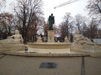 Την είσοδο του κεντρικού κτιρίου πλαισιώνουν τα αγάλματα του Αριστοτέλη και του Ομήρου.