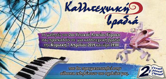 Την Κυριακή, 7/4/2019 πραγματοποιήθηκε η καλλιτεχνική βραδιά, μια εκδήλωση εξ ολοκλήρου