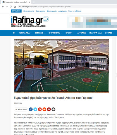 Δείτε επίσης την ανακοίνωση του σχολείου για το βραβείο .
