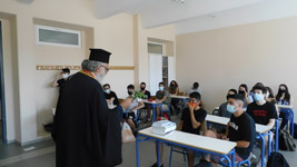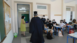 με εκπροσώπους των εκπαιδευτικών και των μαθητών/τριών και στη συνέχεια ο ιερέας επισκέφθηκε