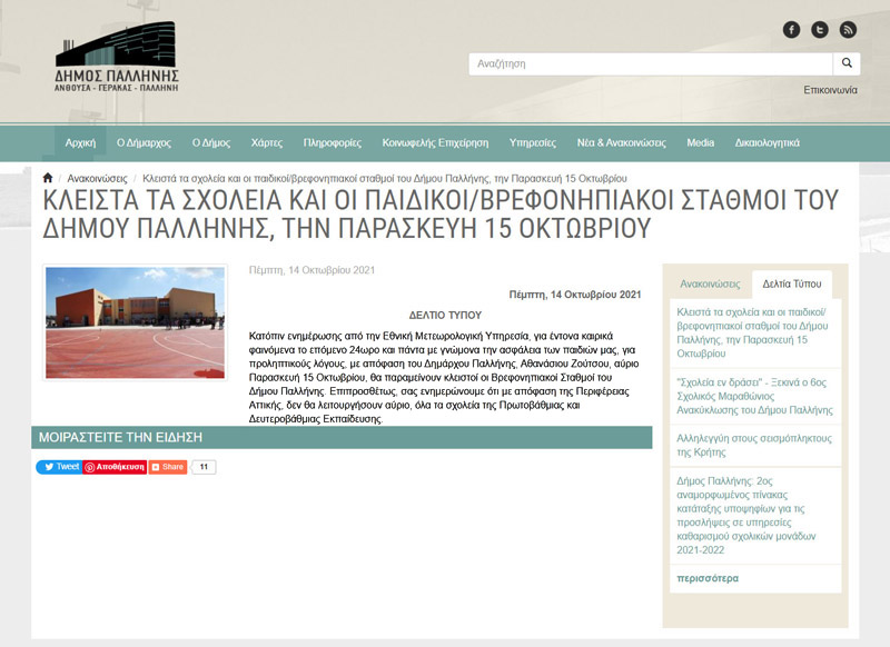 ανακοίνωση του Δήμου Παλλήνης