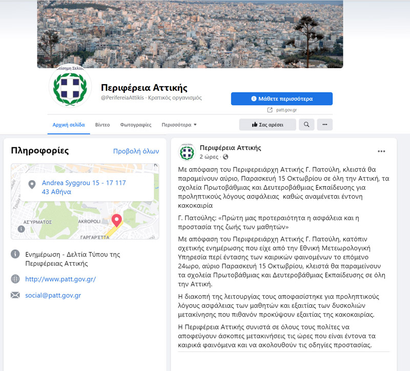 Ανακοίνωση για Κακοκαιρία 15-10-2021