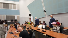 Μετά από ένα σύντομο σνακ, ακολούθησε σύντομη επίσκεψη στο Δημαρχείο Παλλήνης, που υποδέχθηκε και ξενάγησε την ομάδα ο δήμαρχος κ. Ζούτσος με τον πρόεδρο της σχολικής επιτροπής Δευτεροβάθμιας εκπαίδευσης κ. Λιακόπουλος. Παραβρέθηκαν επίσης οι αντιδήμαρχοι κ. Μουρτζιάπης και κ. Διακάκη.