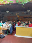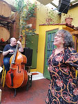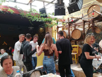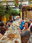 Η περιήγηση του έκλεισε σε μια παραδοσιακή ελληνική ταβέρνα την "Κληματαριά" που βρίσκεται από το 1927 στο ιστορικό κέντρο της πόλης των Αθηνών, στην Πλατεία Θεάτρου. Γευτήκαμε αυθεντική ελληνική κουζίνα και οι καλεσμένοι μας γνώρισαν το "ρεμπέτικο" από το μουσικούς από "Το Γνωστό Τρίο" : Τάσος Γιαννούσης σε Μπουζούκι-Τραγούδι, Παναγιώτης Κατσιμάνης σε Κιθάρα-Τραγούδι και Αντώνης Τζίκας σε Κοντραμπάσο-Τραγούδι. Το Ρεμπέτικο βρίσκεται από το 2017 στον κατάλογο της UNESCO της άυλης Πολιτιστικής Κληρονομιάς της Ανθρωπότητας ως μουσική και πολιτιστική έκφραση άμεσα συνδεδεμένη με το τραγούδι και το χορό που εξαπλώθηκε μεταξύ των αστικών πληθυσμών της κατώτερης και της εργατικής τάξης στις αρχές του 20ου αιώνα με καταγωγή από τη Μικρά Ασία.