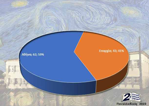 Οι 62 πέρασαν σε σχολές της Αθήνας και οι 43 στην επαρχία.