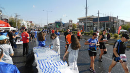 Οι εθελοντές στελέχωσαν ομάδες στην τροφοδοσία των δρομέων με νερά, ισοτονικά ποτά, μπανάνες,