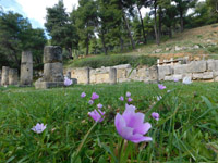 Κατηφορίζοντας από την είσοδο προς τα μνημεία, στα δεξιά σας θα δείτε τους κίονες από το ναό