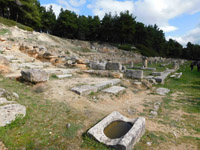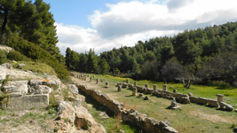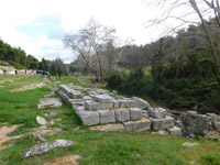 Στη μία όχθη τα επίσημα κτίρια –ναός, θέατρο, βωμοί, στοά, λουτρά–, στην άλλη ο οικισμός με τον ξενώνα του,