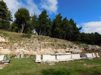 Όπως κοιτάζετε το κοίλο από την ορχήστρα, στη δεξιά πλευρά του θα παρατηρήσετε κάποιες βαθμίδες διαμορφωμένες στο βράχο. Αυτά ήταν τα θεμέλια πάνω στα οποία στηρίζονταν τα ξύλινα καθίσματα των θεατών. Υπάρχει όμως και μία διαφορετική άποψη που υποστηρίζει ότι οι βαθμίδες αυτές ανήκουν στο ορθογώνιο θέατρο του 4ου αι. π.Χ.