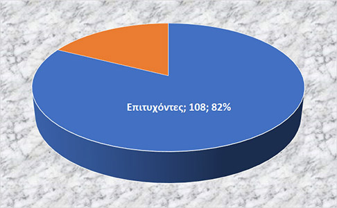 πέτυχαν την εισαγωγή τους οι 108 (ποσοστό 82%).