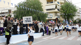 Ακολούθησε η μαθητική παρέλαση στην οδό Ηρώων Πολυτεχνείου.