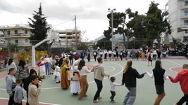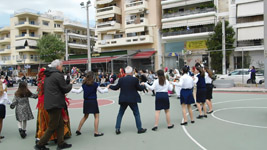 Η εκδήλωση έκλεισε με χορούς από το Λύκειο Ελληνίδων στο ανοιχτό γήπεδο μπάσκετ στην οδό Θεσσαλονίκης.