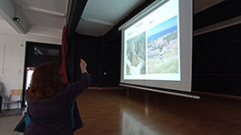 Στη συνέχεια η κ. Πετροπούλου μίλησε για την εμπειρία και έρευνά της στα ελληνόφωνα χωριά της Κάτω Ιταλίας,