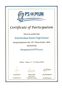 συμμετείχε στο 13ο PSMUN (Platon School Model UN) που πραγματοποιήθηκε στις εγκαταστάσεις