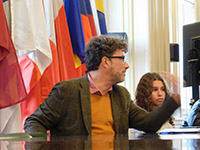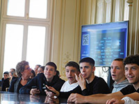 Στη συνέχεια, κατά τη διάρκεια της επίσκεψής μας ο κ. Φίλιππος Καμάρης, υπεύθυνος της κοινότητας/δίκτυο εθελοντών mazi.eu , με την κα. Κατερίνα Θεοφιλοπούλου από το τμήμα Δημοσίων Σχέσεων ενημέρωσαν τους μαθητές και μαθήτριες για την Ευρωπαϊκή Ένωση μέσα από ένα διαδραστικό παιχνίδι.
