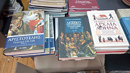βιβλία, καθώς και 3 μεταλλικούς φοριαμούς και 4 ξύλινες ντουλάπες.
