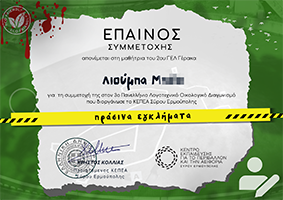 απονεμήθηκε στη μαθήτρια του 2ου ΓΕΛ Γέρακα Μαρινίκη Ιωάννα Α. .