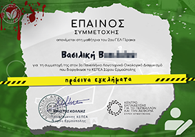 Επίσης έπαινο συμμετοχής πήραν και οι Μάρκος Α., Βασιλική Β., Λιούμπα Μ. .