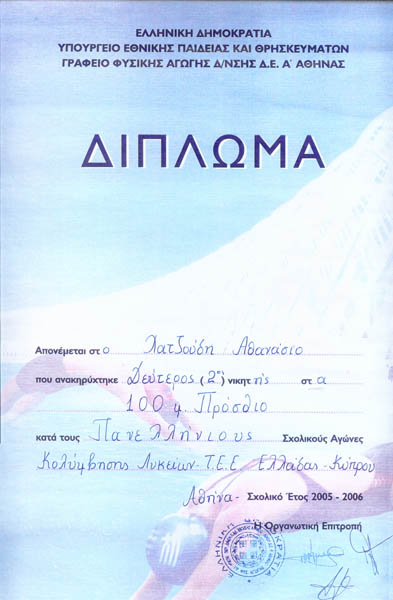 κατά τους Πανελλήνιους σχολικούς αγώνες Κολύμβησης Λυκείων Ελλάδος - Κύπρου.