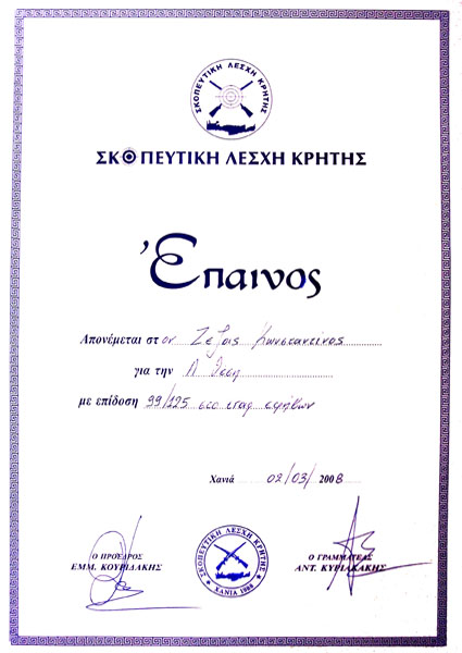 •Σκοπευτική Λέσχη Κρήτης ΕΠΑΙΝΟΣ απονέμεται στον Ζέζα Κωνσταντίνο