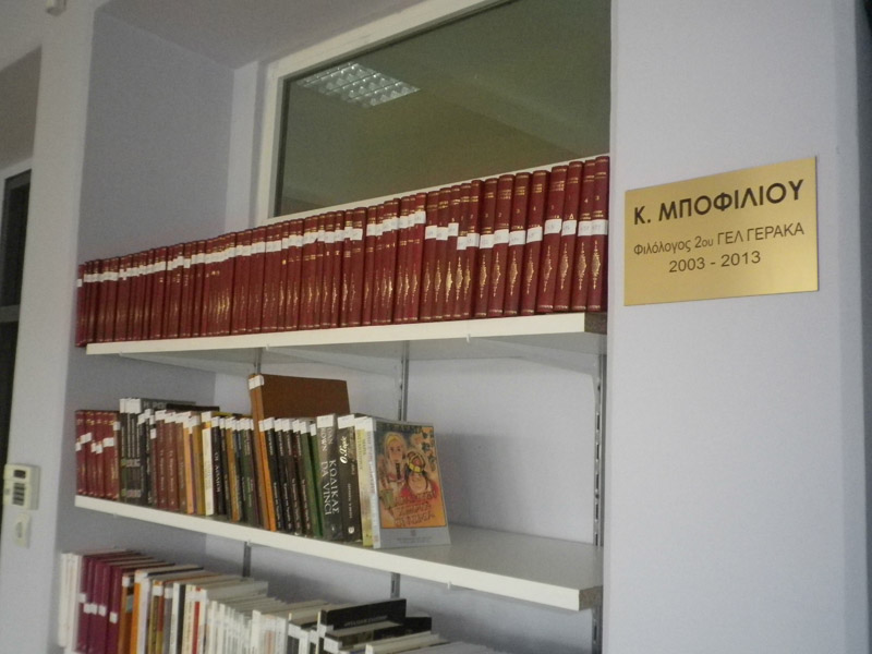 προσέφεραν βιβλία. Βιβλία προσέφεραν επίσης ο πρόεδρος του συλλόγου γονέων του 2ου Γυμνασίου Γέρακα, ο Διευθυντής του 3ου Γυμνασίου Γέρακα.
