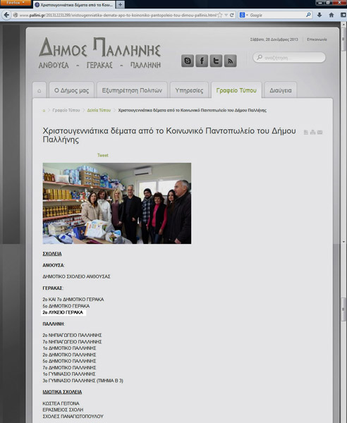 δελτίο τύπου που ανάρτησε στην ιστοσελίδα του