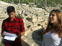 μαθητές και μαθήτριες παρουσίασηαν αποσπάσματα από την τραγωδία Ελένη του Ευρυπίδη.