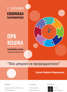 πιο κοντά στην Πληροφορική και αφού «δοκιμάσουν» μια Ώρα του Κώδικα» κατά τη διάρκεια της εβδομάδας 7-13 Δεκεμβρίου 2015, να κατανοήσουν καλύτερα με τι ασχολείται η Επιστήμη των Υπολογιστών