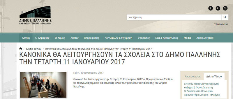 Κανονικά θα λειτουργήσουν τα σχολεία στο Δήμο Παλλήνης