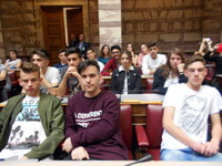 Οι μαθητές μαζί με τους εκπαιδευτικούς συνοδούς τους, παρακολούθησαν εκπαιδευτικό βίντεο σε ειδική αίθουσα,
