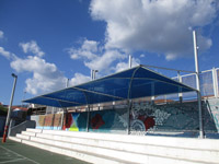 Οι μαθητές έτσι μπορούν να κάθονται στα διαλλείματα προστατευμένοι από τα καιρικά φαινόμενα.