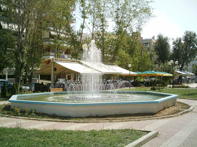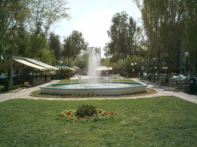 Το σιντριβάνι και τα ψηλά δέντρα προσφέρουν τη σκιά τους στους περιπατητές. Τριγύρω υπάρχουν μαγαζιά που μπορούμε να απολαύσουμε καφέ, αναψυκτικά κλπ.