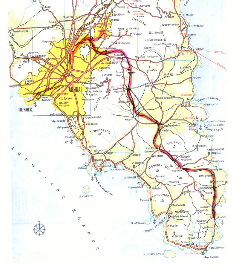 Στο Γέρακα περνούσε από την οδό Σόλωνος, διέσχιζε κάθετα την οδό Κλεισθένους στο ύψος της σημερινής Αττικής οδού.